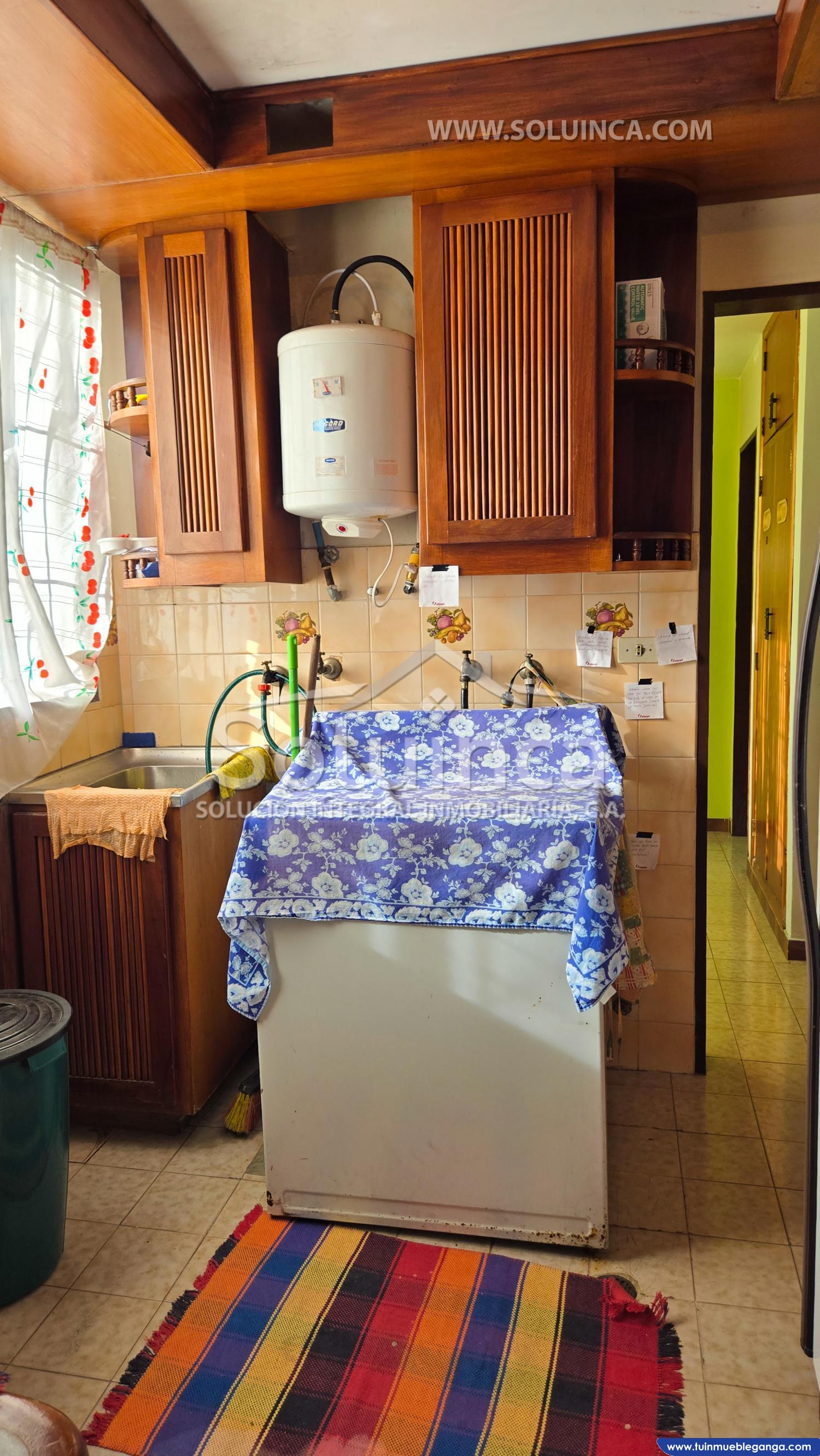 ·Cocina en mampostería con tope de cerámica con acabados en madera.
