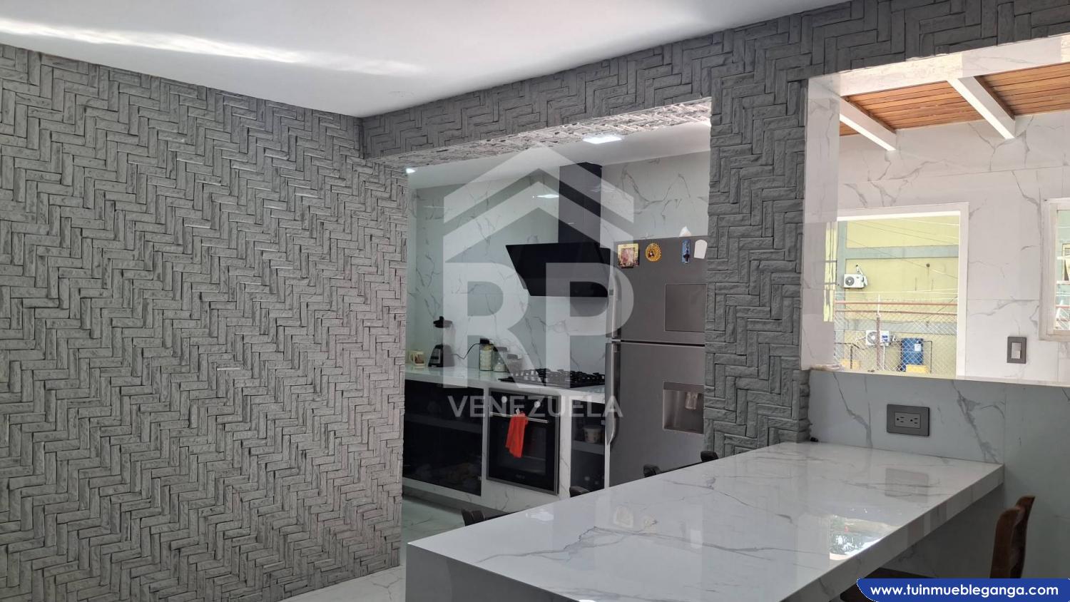 *. La sala es un verdadero deleite, con elegante piso de porcelanato y paredes de estilo hepoccico que le dan un toque moderno y acogedor.