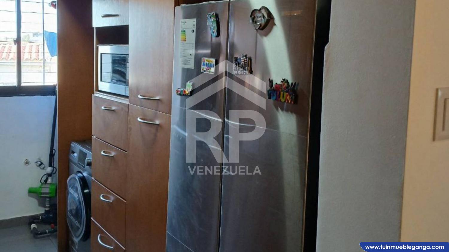 La cocina empotrada destaca por su diseño práctico, equipada con gabinetes en madera y tope de granito, ofreciendo durabilidad, estilo y suficiente espacio de almacenamiento.
